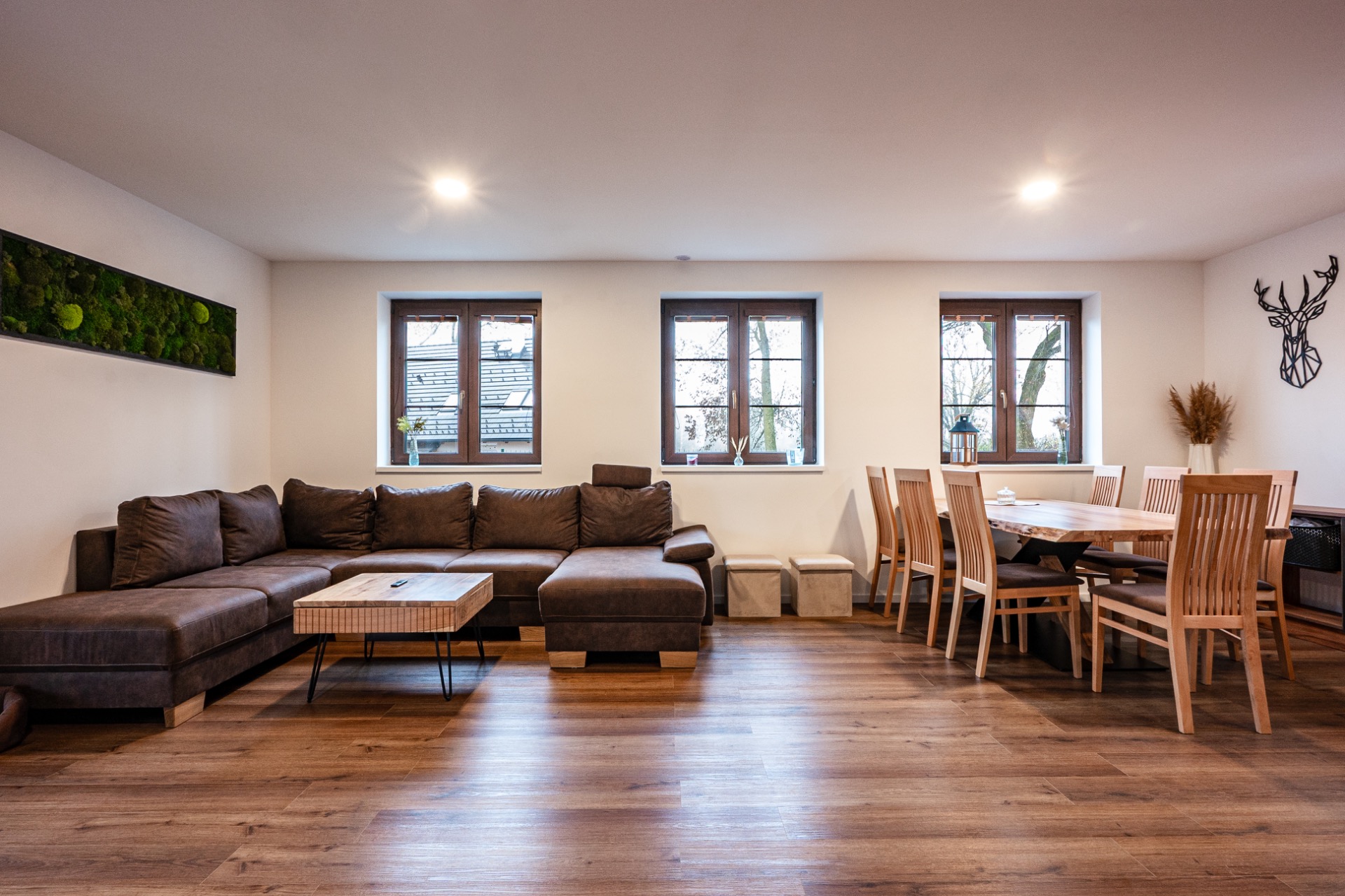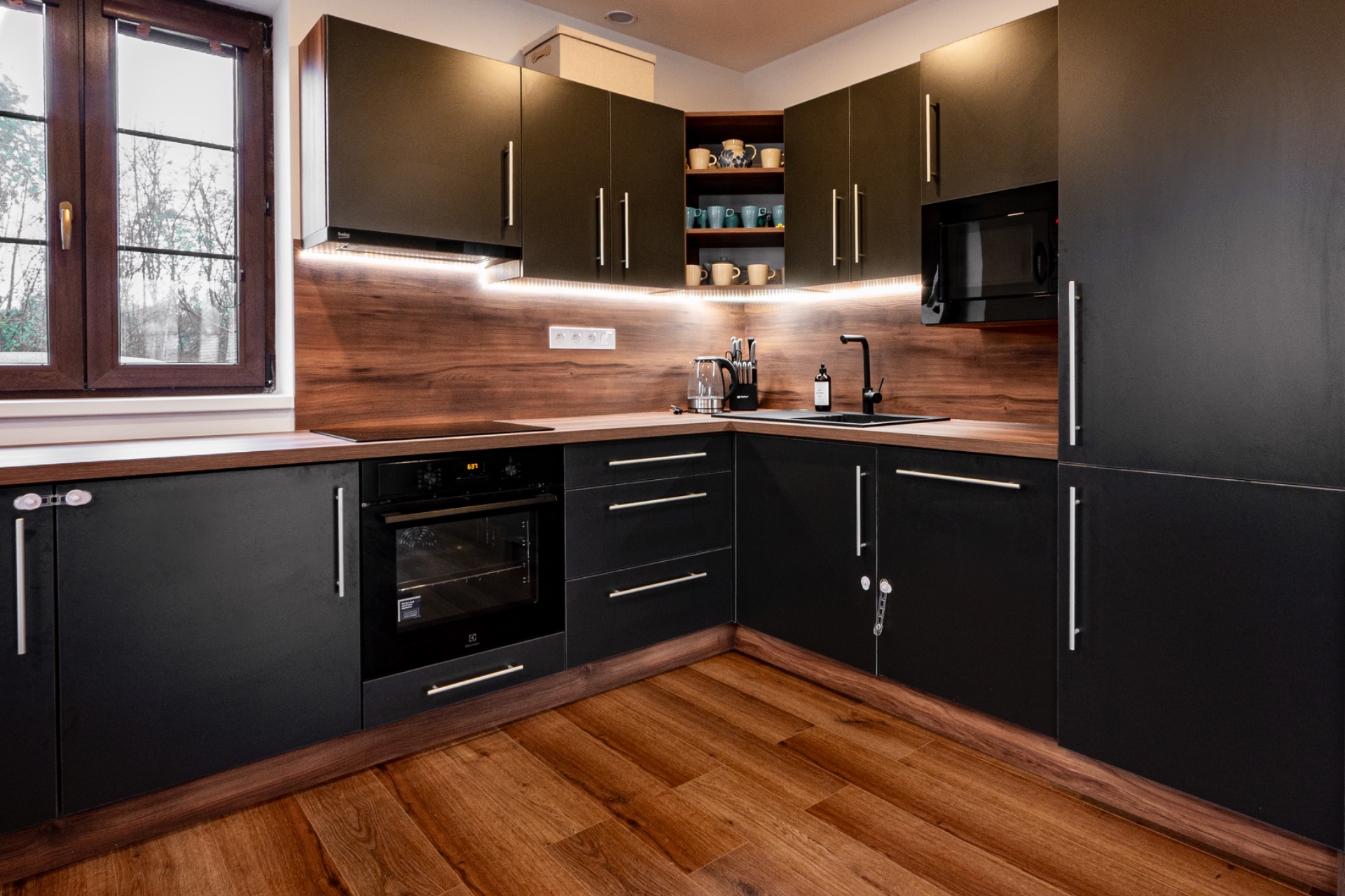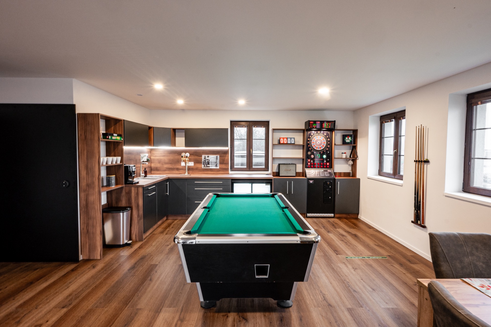 Moderní a útulné zázemí nabízí komfortní ubytování až pro 12 osob – ideální pro rodiny, přátele i větší skupiny. V domě najdete vše, co potřebujete pro pohodlný pobyt a relaxaci - Plně vybavená kuchyň s moderními spotřebiči: kávovar, rychlovarná konvice, toustovač, myčka, varná deska, trouba i pračka. Jídelna s velkým stolem pro společné stolování. Obývací část s pohodlným gaučem a televizí
